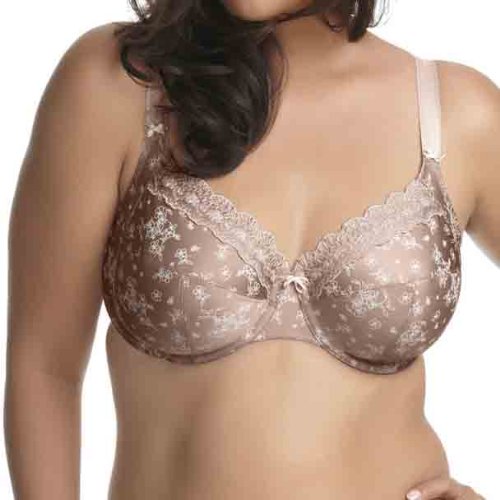 Seamed, unlined underwire bra. Sheer nylon mesh. Full cups provide coverage and support. Supportive, firm mesh wings. Contrasting floral on cups. Embroidered trim along bustline. Satin bow on non-stretch center. Flatters full busted figures. Adjustable stretch, close-set straps won't slip. 3 column, 2 row hook and eye back closure. U.K. cup sizes. See size chart for U.S. conversion.. Elomi Style EL8100