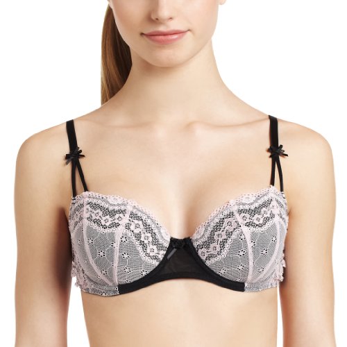 Betsey Johnson Women's Eyelet Lace 3 Section Foam Demi Bra, Sugar Pink, 34D Reviews